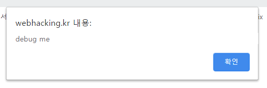 이번 문제에 들어가는 순간 "debug me" 라는 메세지가 뜬다. Ctrl+u를 통해 페이지 소스를 확인해봤다.